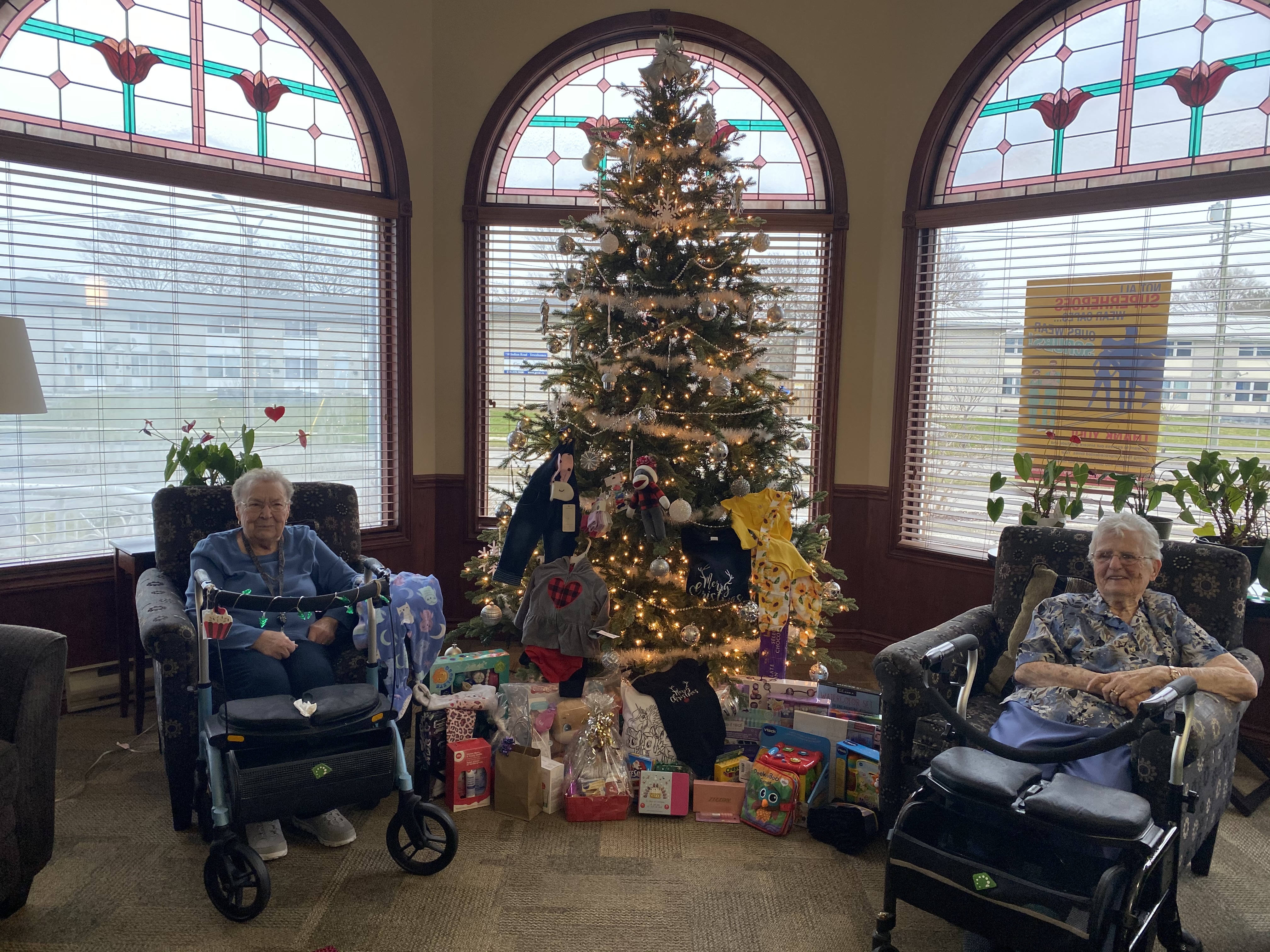Rosewood Village adopts a local family each Christmas season to help out a family in need. We have so much fun doing this each year, it brings so much joy in our home for employees and residents. This years family was a mother and her 6 month old daughter and a 12 year old daughter. We are so excited for them to have a wonderful Christmas and hope they all enjoy their special gifts from us all. Here is a picture of 2 of our residents sitting beside our tree with all of the presents we collected for them. This is officially became an annual event for Rosewood, one that is truly enjoyed so much.